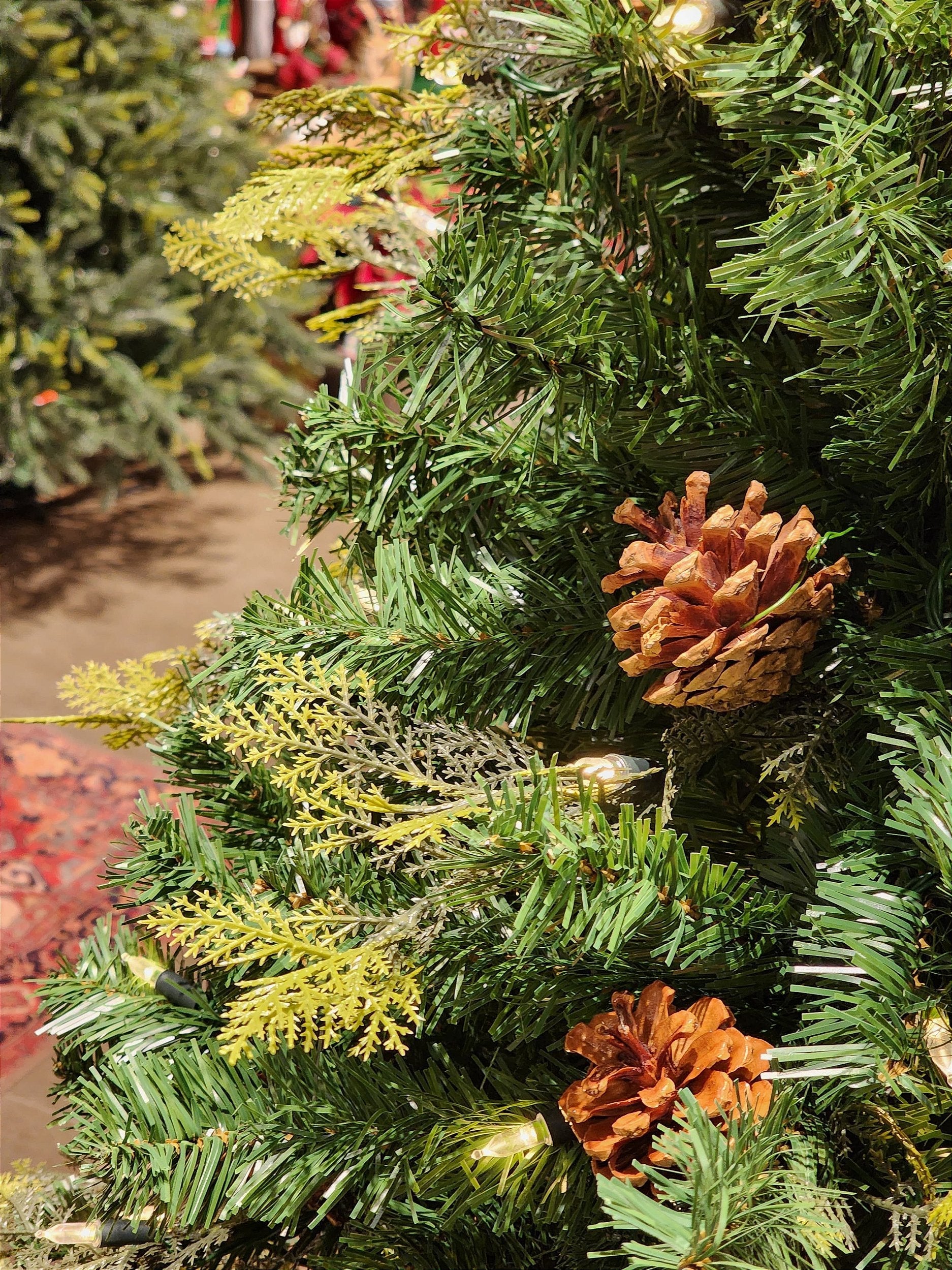 NOVO MODELO DA ÁRVORE CLICK, a árvore com a ligação por plug fácil, no tronco da árvore existe uma conexão de plug para ligação dos piscas, esse sistema e muito utilizado pois a facilidade da montagem e mais rapida, pois os piscas já vem passado nos galhos, esta árvore possui um mix de galhos emborachados e galhos tradicionais, além das pinhas que vem distribuidas sobre os galhos, seu pisca e o tradicional a lampada com bulbo maior em led trazendo mais luminosidade para a árvore.