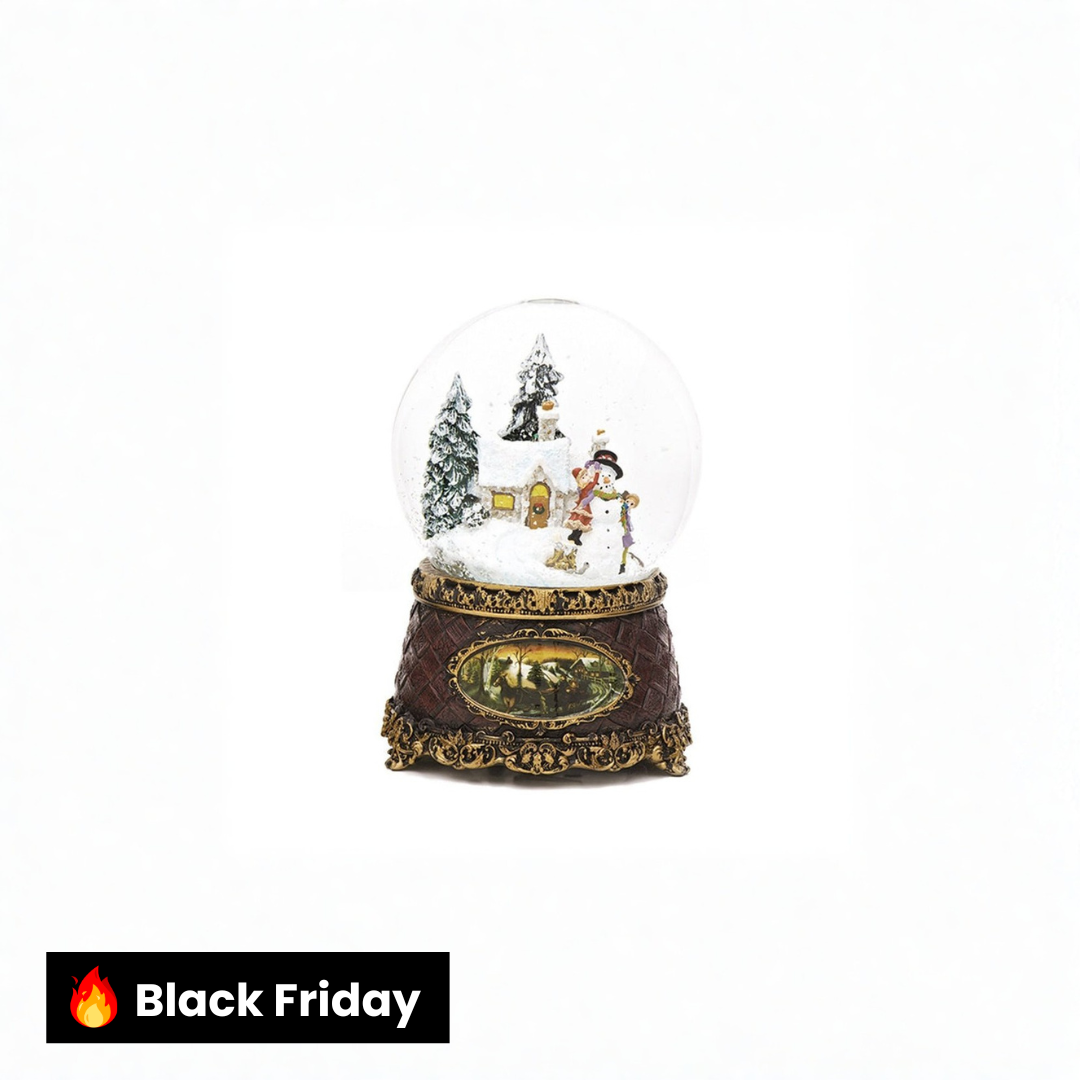 Globo de neve de Natal com boneco de neve vitoriano e crianças (musical)