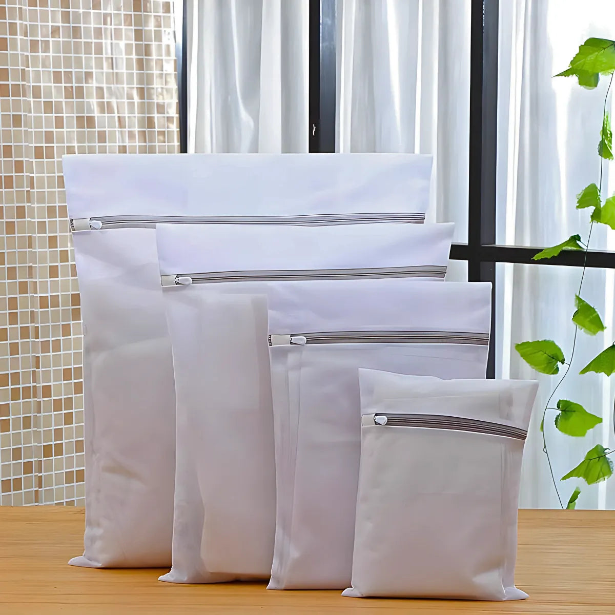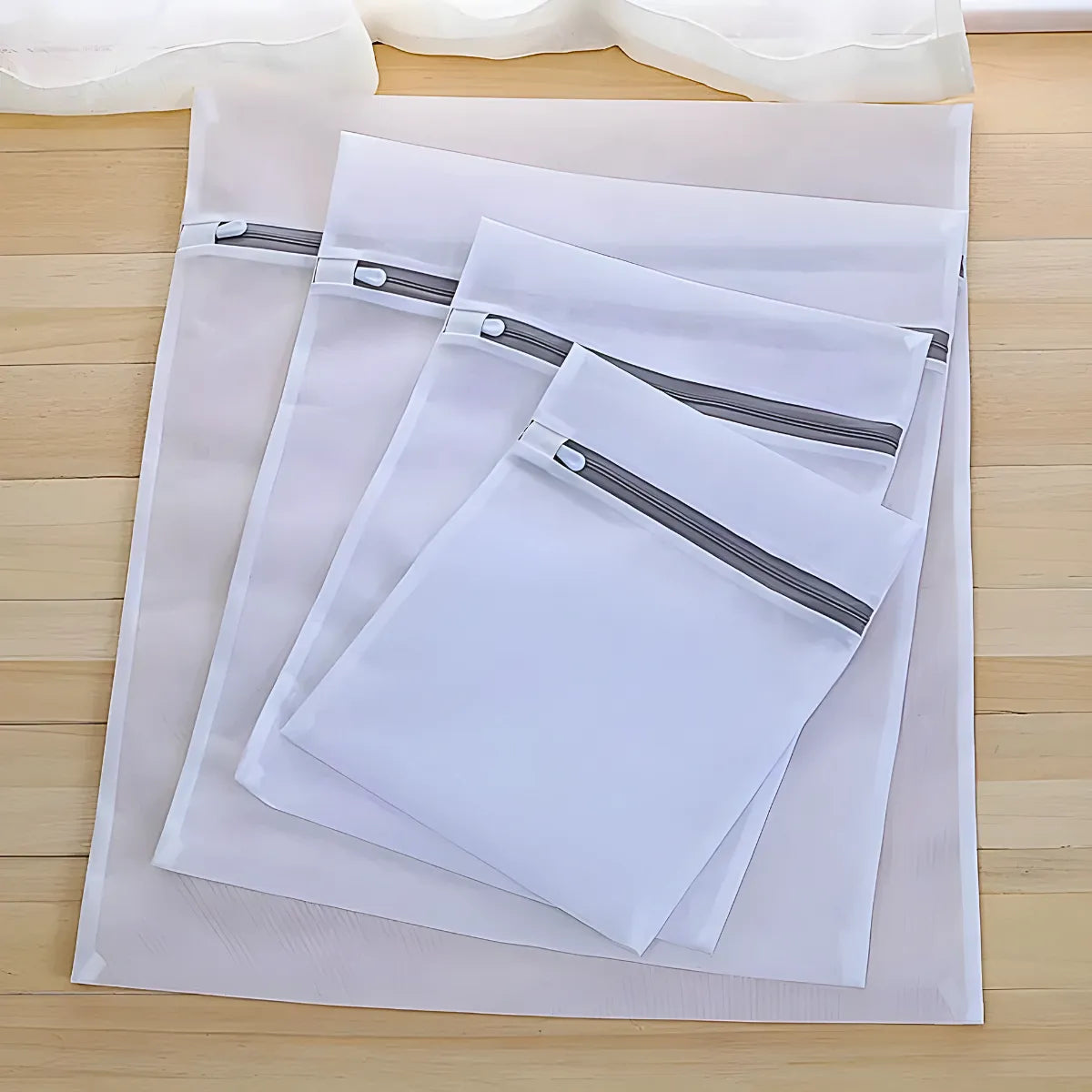 4 sacos para lavanderia com zíper (em tamanhos variados)